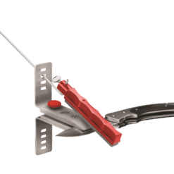 - Afia a zona de alvo e, com a faca ainda presa na braçadeira, vira a pinça (e a faca) e repete este processo do outro lado da lâmina.