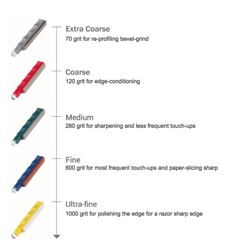 - Amolador Azul Fino: (grão 600) para retoques mais frequentes e manter a sua lâmina afiada como papel