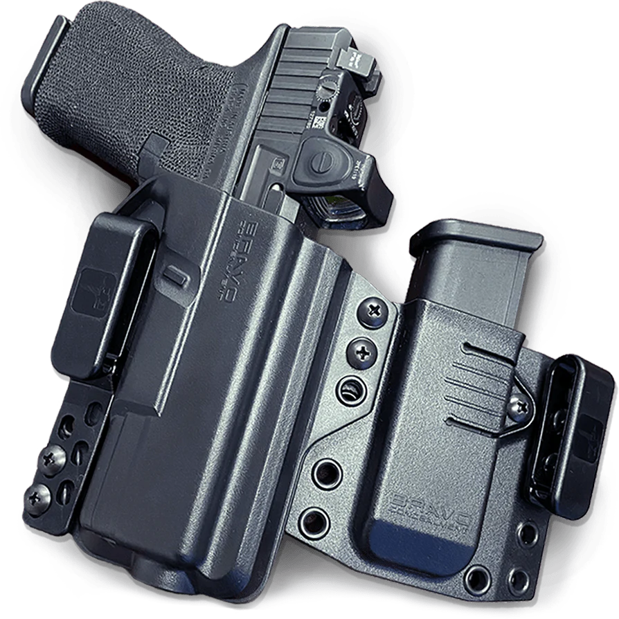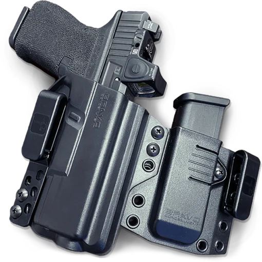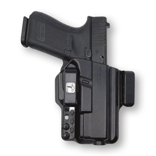 O coldre Torsion Light Bearing fornece tudo o que é necessário para transportar uma arma em segurança. O coldre de transporte oculto Bravo Concealment Torsion IWB é projetado para ser a melhor opção de cintura interna para o transporte oculto diário. Este coldre Inside the waistband (IWB) encaixa-se perfeitamente na arma. Isso ocorre porque os moldes são feitos internamente pela mais recente tecnologia de design CAD. São usadas armas reais para projetar este coldre. É feito o Scan em 3D da arma real e construído uma sólida fora da nuvem para o ajuste mais preciso dentro de três milésimos de polegada. Essa é a espessura de um fio de cabelo humano! O coldre Torsion IWB anda perto do corpo devido à nossa tecnologia patenteada “Torsion”. Isso fixa a arma e inclina-a ou torce em direção ao seu corpo para ocultação máxima. Cria menos material na parte de trás do coldre para um ajuste mais confortável, ao mesmo tempo em que se ajusta perfeitamente à sua arma. Estes coldres de polímero estilo Kydex são resistentes e duráveis com peso mínimo adicionado à sua arma. Têm uma ligeira curva para ajudar a envolver a curvatura natural da cintura. Isso faz com que a frente do coldre praticamente desapareça ao usar as roupas certas. Os coldres Bravo têm um encaixe muito suave para um “clique” rápido e pronunciado ao recolocar a arma no coldre, atuando assim como proteção para sua arma. Adicione uma bolsa magnética para transporte de força total. Os porta-carregadores também são feitos da mesma maneira para ocultação total. Os acessórios de remo também podem ser adicionados ao porta-carregador para facilitar a colocação e retirada.