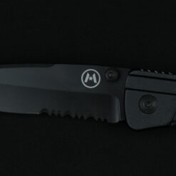 A nossa navalha de Resgate apresenta o logotipo da milícia numa das laterais da lâmina preta. A lâmina é em 3Cr13 de abertura bidextra. Tem trinco de segurança bidextro. No cabo da navalha tem quebra-vidros e corta cintos. Possui entalhes de serra para corte de cordas. Numa das laterais do punho tem um clip para que possa trazer a navalha presa no seu vestuário ou no seu equipamento.