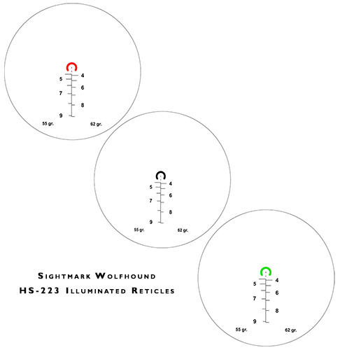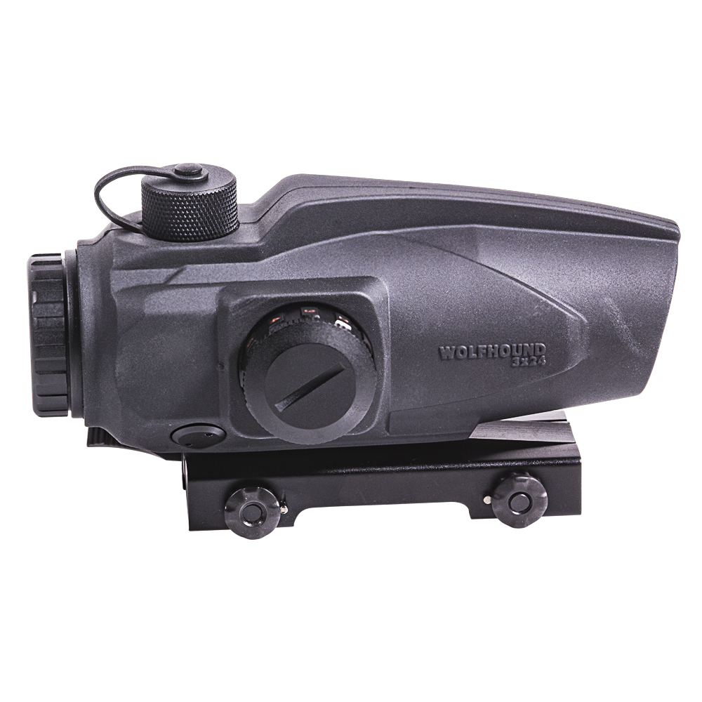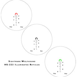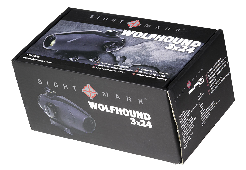 O novo visor Wolfhound 3×24 é um dispositivo de mira prismático de inspiração militar, com distância ocular acima da média e uma retícula balística Horseshoe para o cartucho .223 Rem/5,56 NATO para projéteis de 55gr e 62gr, que podem ser iluminados em vermelho e verde em 5 níveis para tiros precisos em condições de pouca luz, com alcance de até 900 jardas.